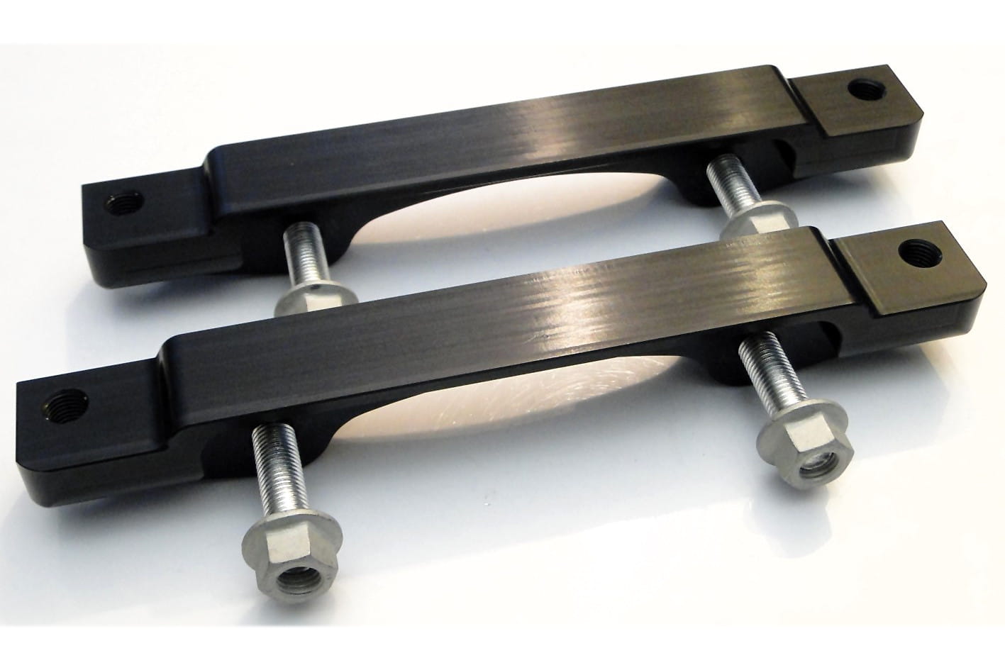 Gli adattatori sono realizzati in duralluminio/alluminio magnesio di alta qualità, che garantisce un peso proprio ridotto (compresa una massa non sospesa ridotta), combinato con un'elevata resistenza meccanica paragonabile all'acciaio.