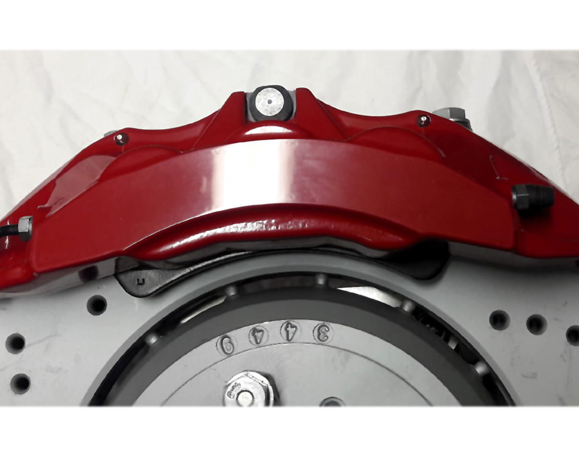 Il disco da 360 x 30 mm [BMW M3 E92 / LR Discovery IV] combinato con una pinza a 6 pistoncini [Alfa Romeo Giulia / Stelvio] BREMBO consente una potenza frenante elevata e ripetibile.