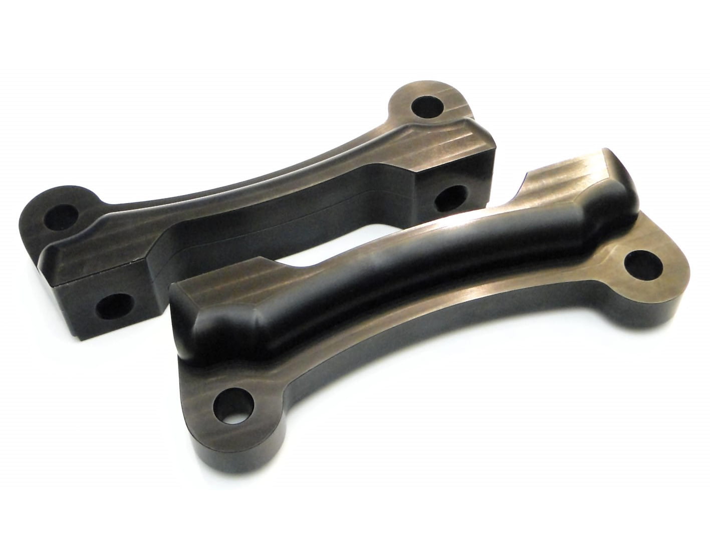 Gli adattatori per pinze freno sono realizzati in alluminio magnesio, ampiamente utilizzato negli sport motoristici. È caratterizzato da un'elevata resistenza meccanica, paragonabile all'acciaio, e da un peso proprio ridotto, inferiore del 70% rispetto all'acciaio.