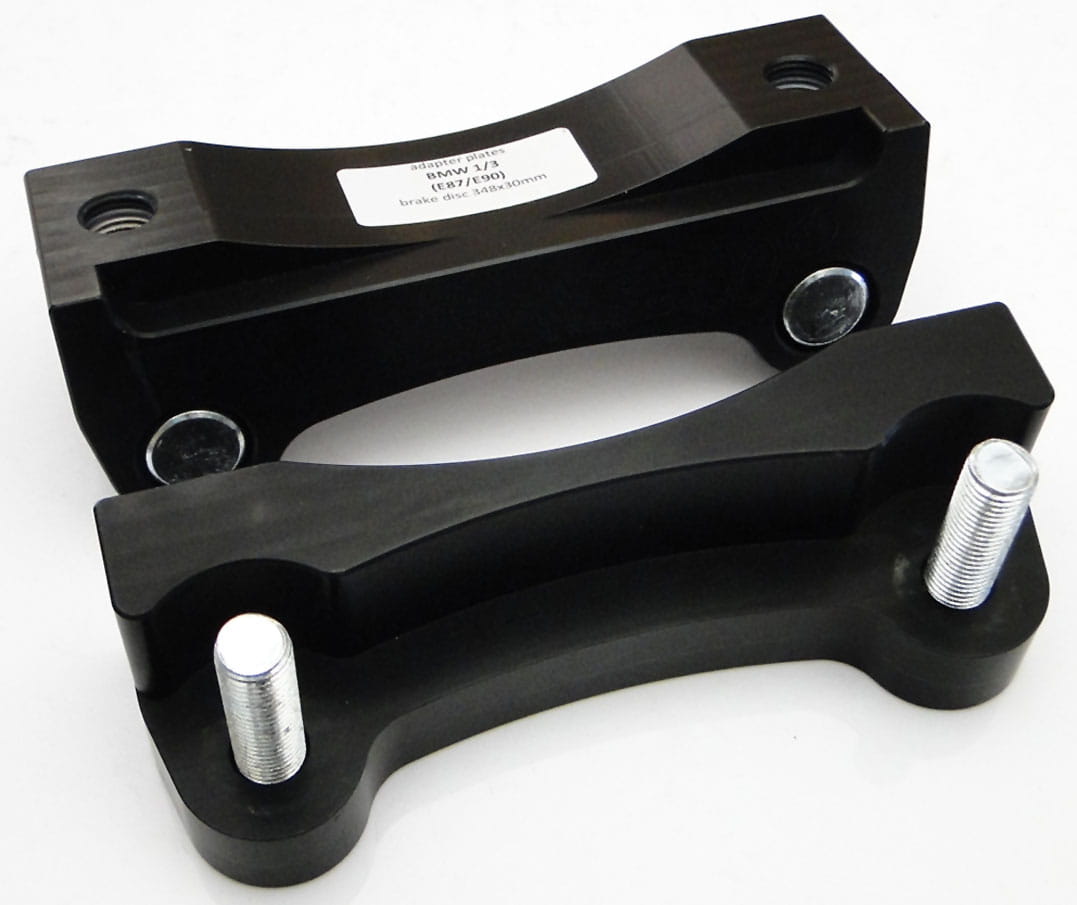 Adapters allow the installation of 4 piston [Alfa Romeo 159 / Brera] BIG BREMBO or 4 piston [Megane 3RS / 4RS] BIG BREMBO caliper on a brake disk 348 x 30 mm [BMW 3 E90]