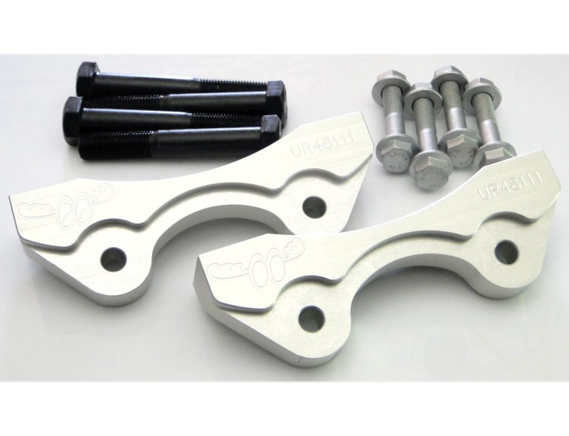 Brake caliper adapters are a group of products called "racing use only". Their use in road cars is regulated by national/local legislation.