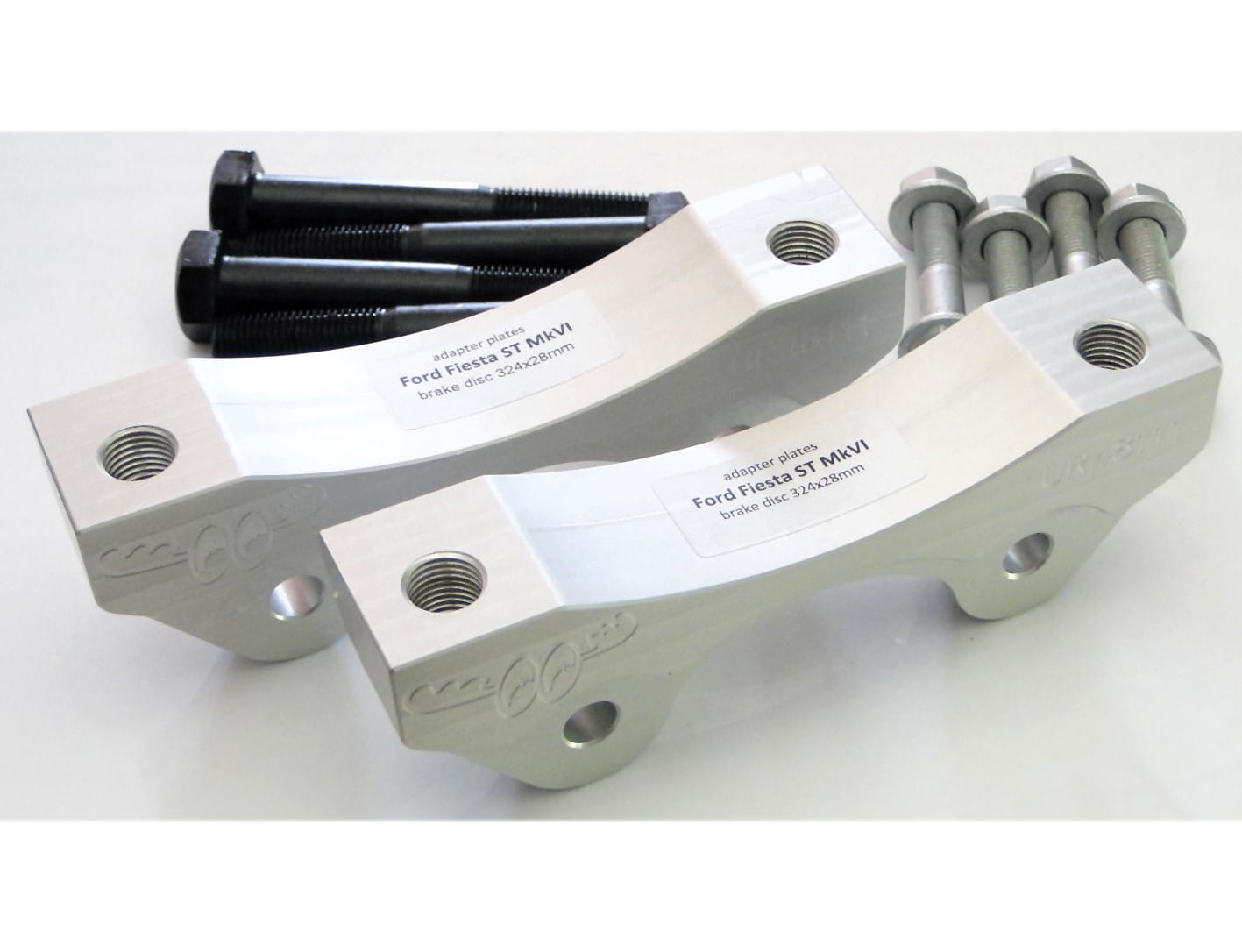 Adapters allow the installation of 4 piston [Alfa Romeo 159 / Brera] BIG BREMBO or 4 piston [Megane 3RS / 4RS] BIG BREMBO or 4 piston [Clio 3RS] SMALL BREMBO caliper on a brake disk 324 x 28mm [Ford Focus RS Mk1]
