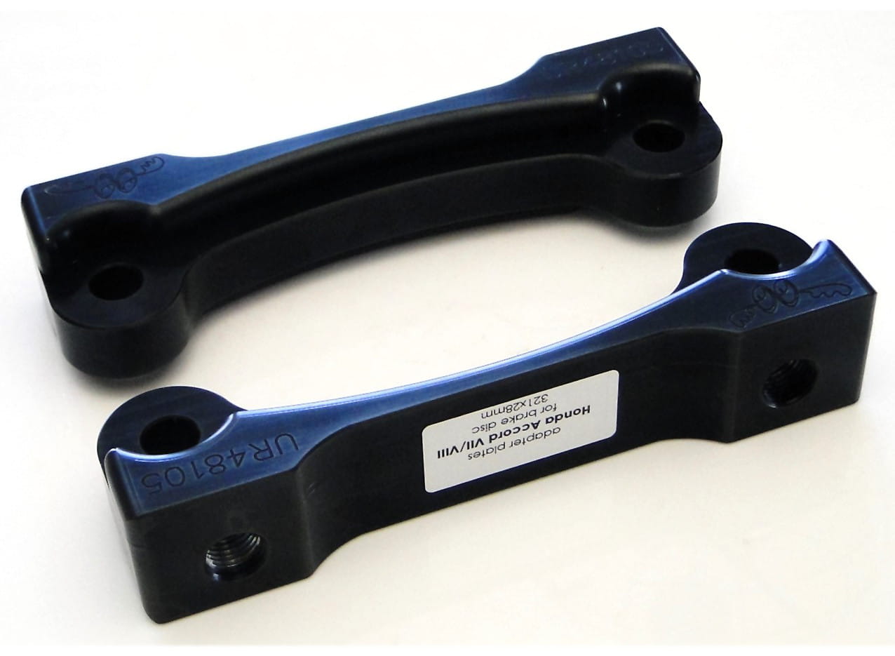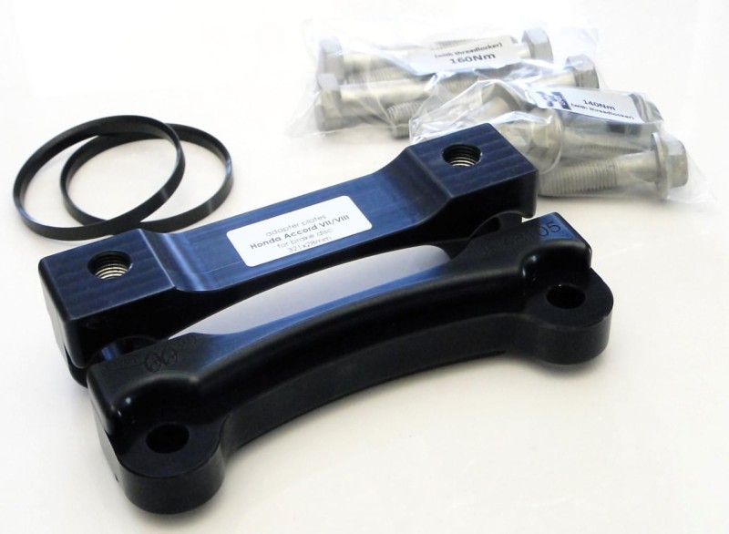 Brake caliper adapters are a group of products called "racing use only". Their use in road cars is regulated by national/local legislation.