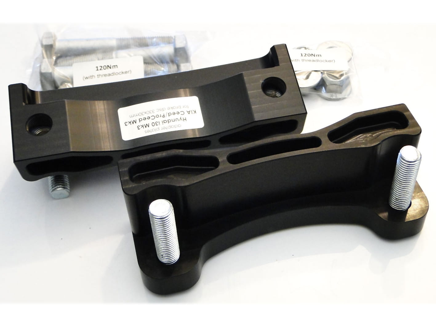 Adapters allow the installation of 4 piston [Alfa Romeo 159 / Brera] BIG BREMBO or 4 piston [Megane 3RS / 4RS] BIG BREMBO caliper on a brake disk 330 x 30 mm [KIA SantaFe]