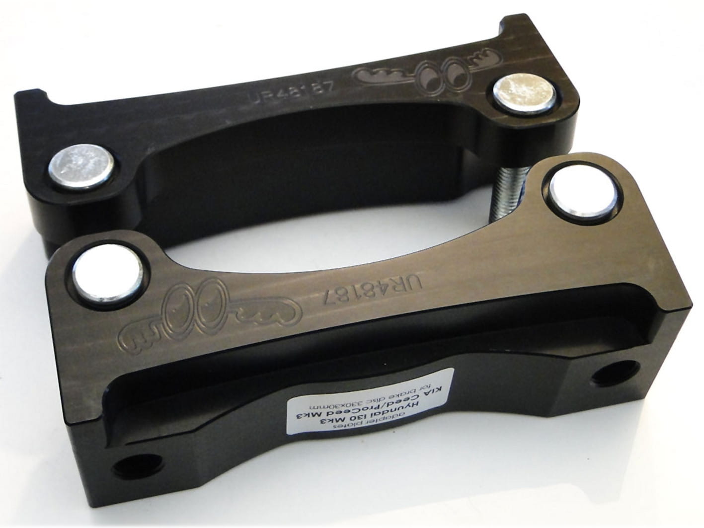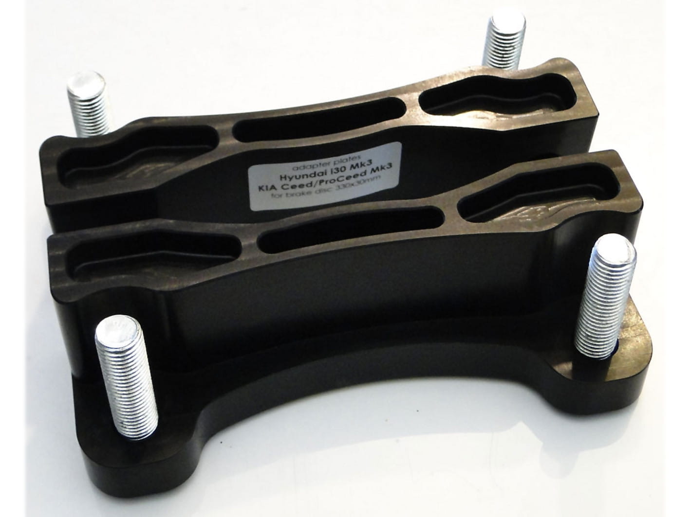 Brake caliper adapters are made of aluminum magnesium, which is widely used in motorsports. It is characterized by high mechanical strength, comparable to steel, and a low dead weight, 70% less than steel.
