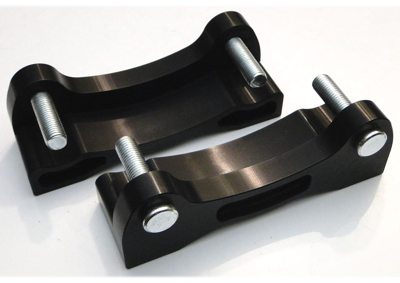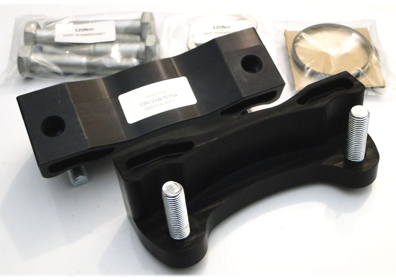 Brake caliper adapters are made of aluminum magnesium, which is widely used in motorsports. It is characterized by high mechanical strength, comparable to steel, and a low dead weight, 70% less than steel.