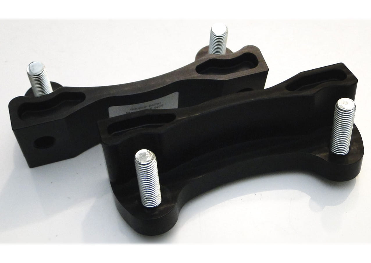 The adapters are made of high-quality duralumin/aluminium magnesium, which ensures a low dead weight (including low unsprung mass), combined with a high mechanical strength comparable to steel.