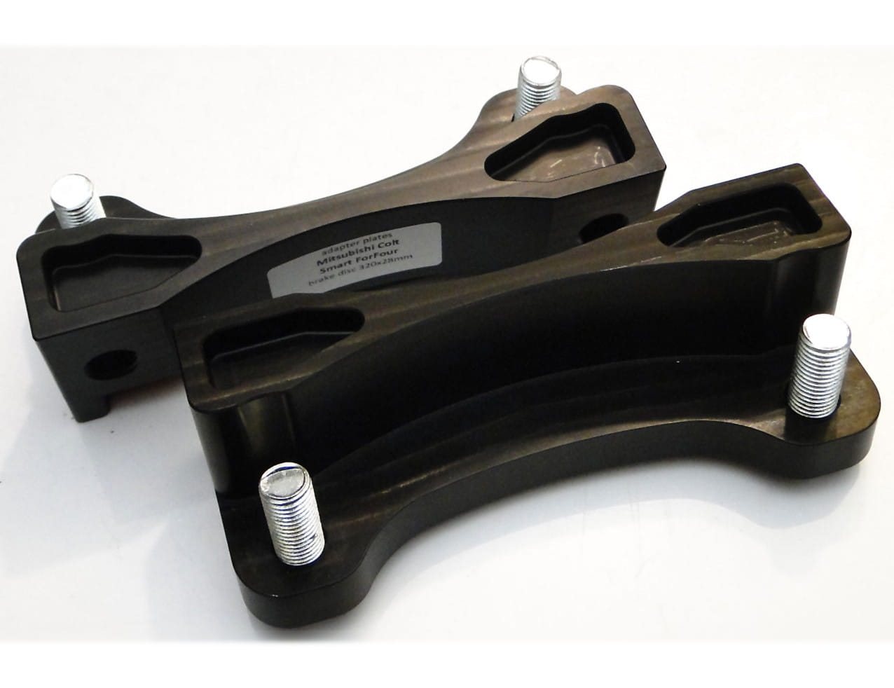 Brake caliper adapters are made of aluminum magnesium, which is widely used in motorsports. It is characterized by high mechanical strength, comparable to steel, and a low dead weight, 70% less than steel.