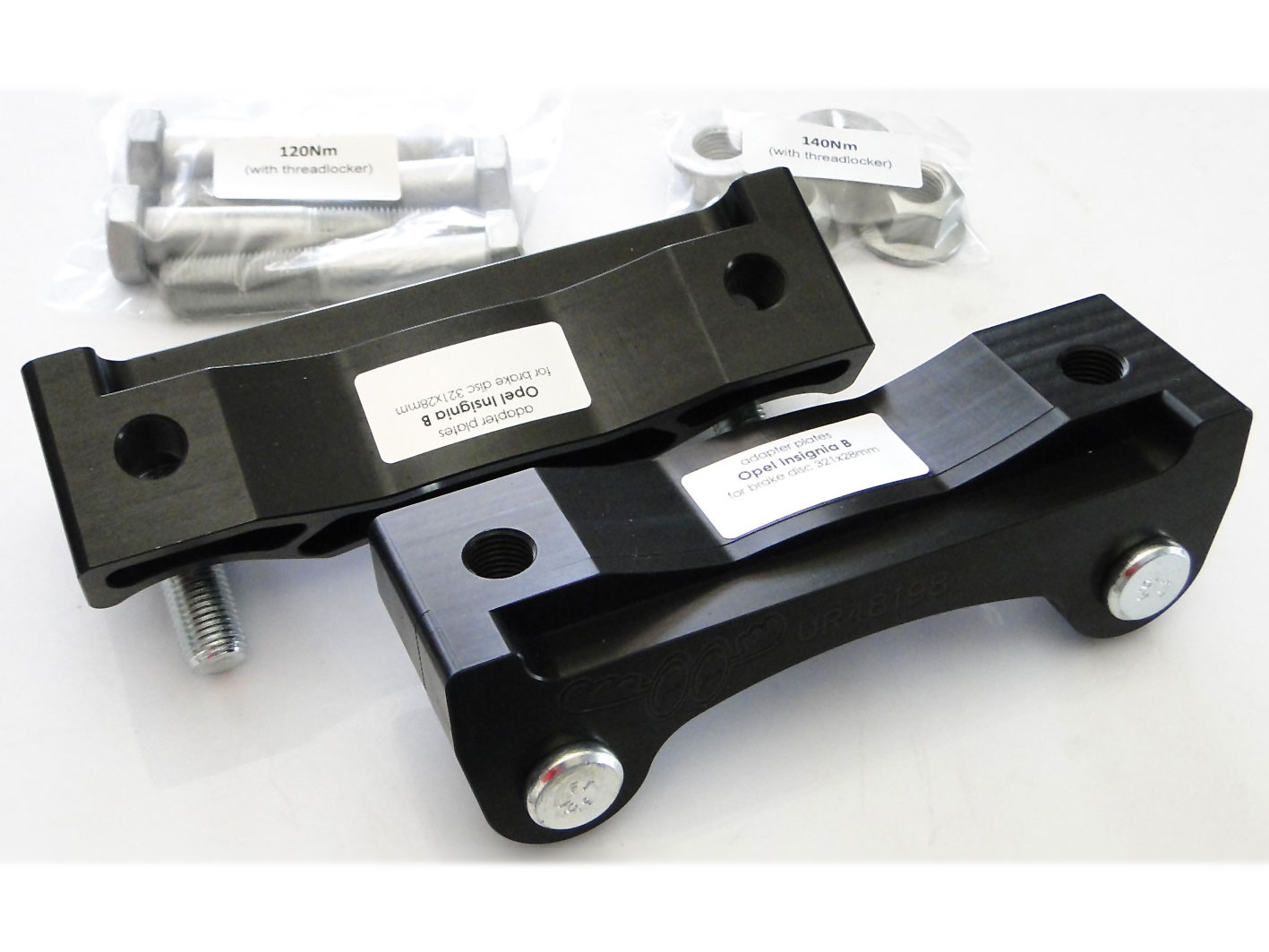 Adapters allow the installation of 4 piston [Alfa Romeo 159 / Brera / Giulietta] BIG BREMBO or 4 piston [Megane 3RS / 4RS] BIG BREMBO caliper on a brake disk 321 x 28 mm [OE Opel/Vauxhall]