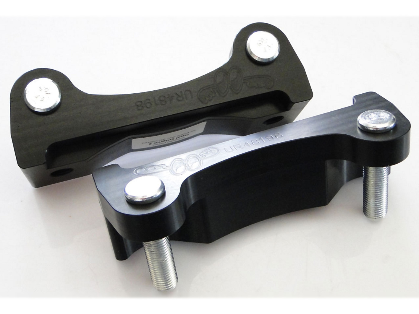 Brake caliper adapters are a group of products called "racing use only". Their use in road cars is regulated by national/local legislation.