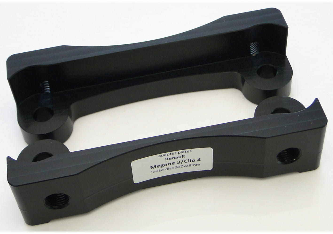 Adapters allow the installation of 4 piston [Alfa Romeo 159 / Brera] BIG BREMBO or 4 piston [Megane 3RS / 4RS] BIG BREMBO caliper on a brake disk 320 x 28 mm [OE Renault]
