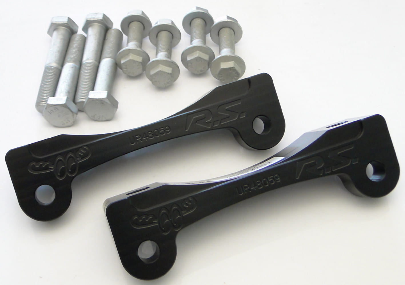 Brake caliper adapters are a group of products called "racing use only". Their use in road cars is regulated by national/local legislation.