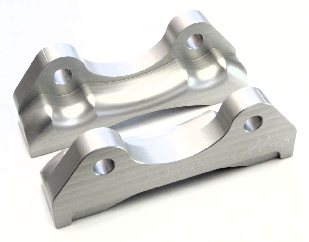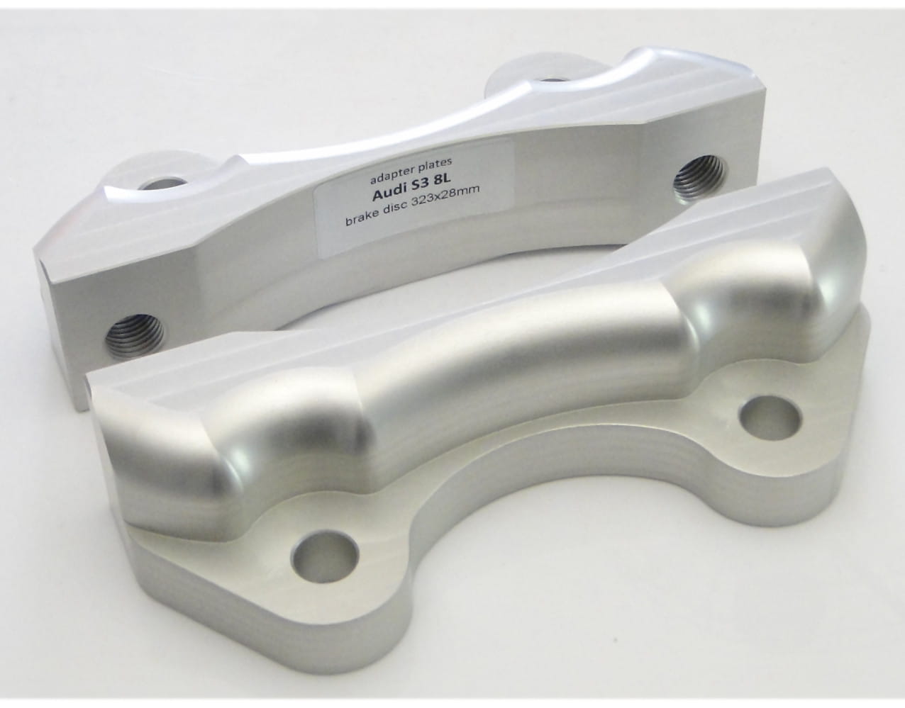 Brake caliper adapters are made of aluminum magnesium, which is widely used in motorsports. It is characterized by high mechanical strength, comparable to steel, and a low dead weight, 70% less than steel.