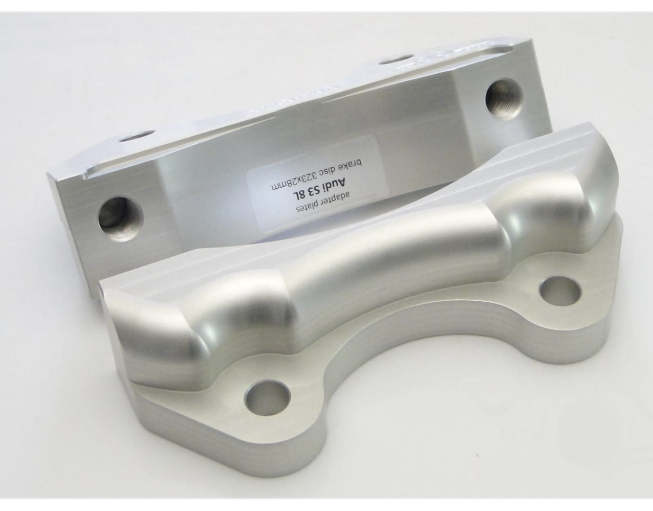 Brake caliper adapters are made of aluminum magnesium, which is widely used in motorsports. It is characterized by high mechanical strength, comparable to steel, and a low dead weight, 70% less than steel.