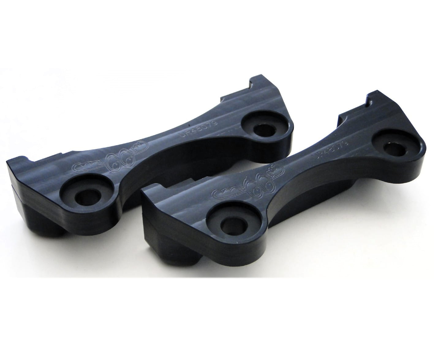 Brake caliper adapters are made of aluminum magnesium, which is widely used in motorsports. It is characterized by high mechanical strength, comparable to steel, and a low dead weight, 70% less than steel.