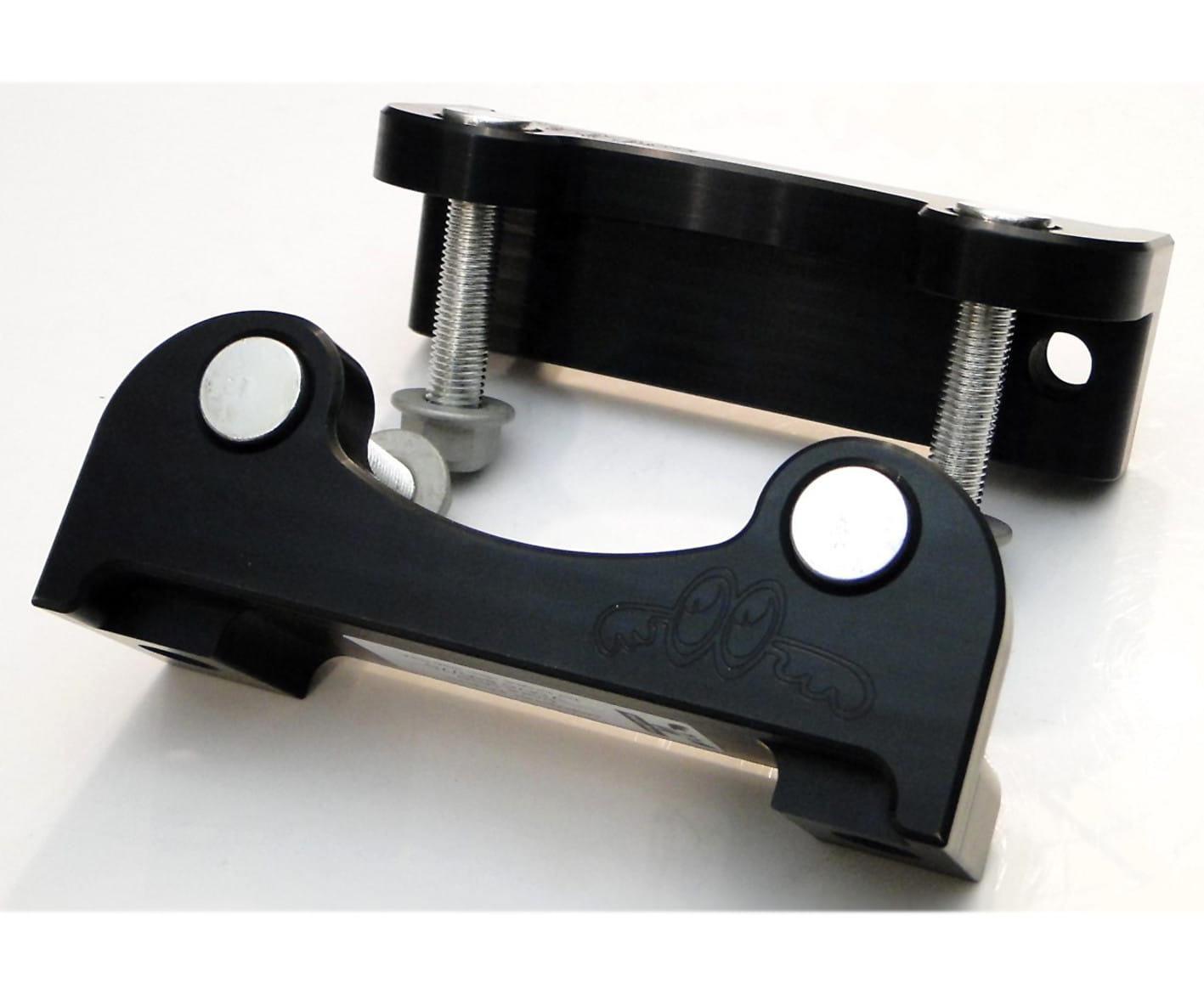 Brake caliper adapters are made of aluminum magnesium, which is widely used in motorsports. It is characterized by high mechanical strength, comparable to steel, and a low dead weight, 70% less than steel.
