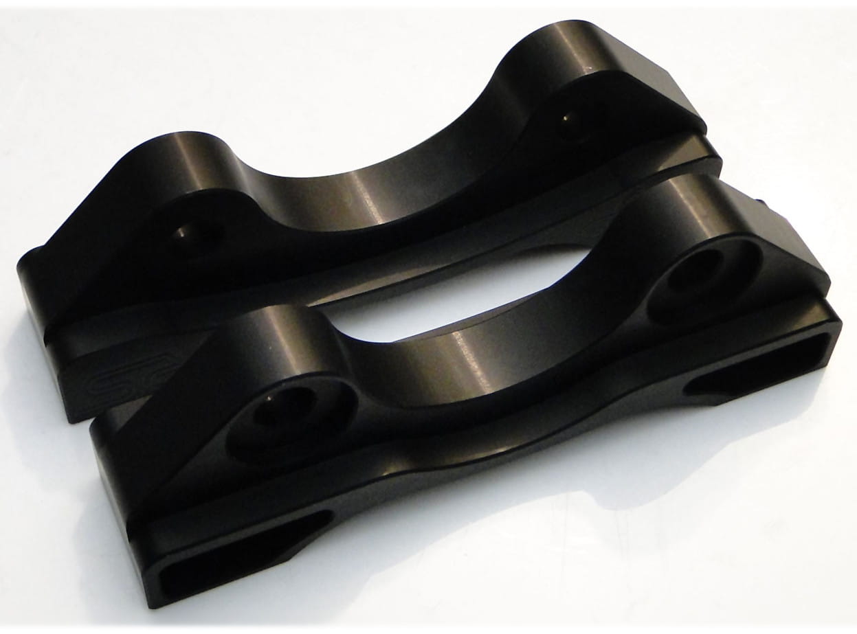 Brake caliper adapters are made of aluminum magnesium, which is widely used in motorsports. It is characterized by high mechanical strength, comparable to steel, and a low dead weight, 70% less than steel.