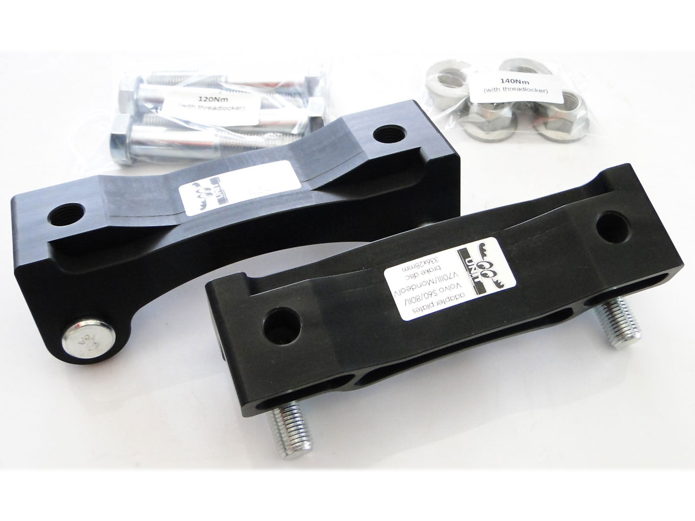 Adapters allow the installation of 4 piston [Alfa Romeo 159 / Brera] BIG BREMBO or 4 piston [Megane 3RS / 4RS] BIG BREMBO caliper on a brake disk 336 x 28 mm [Volvo S60]